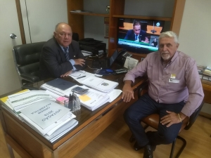O Prefeito Municipal Gervasone em Brasília em visita ao gabinete do Deputado Federal Schiavinato. Onde na oportunidade solicitou recursos para a aquisição de um rolo compactador para o município de Altônia.